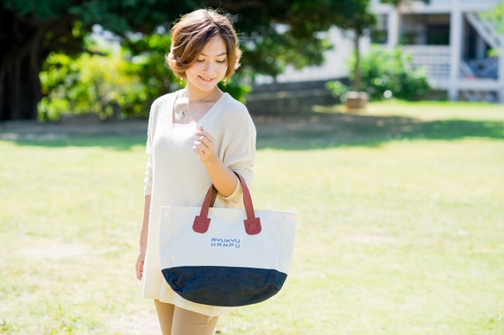 下部に使用したヨコ型トートバッグ。
